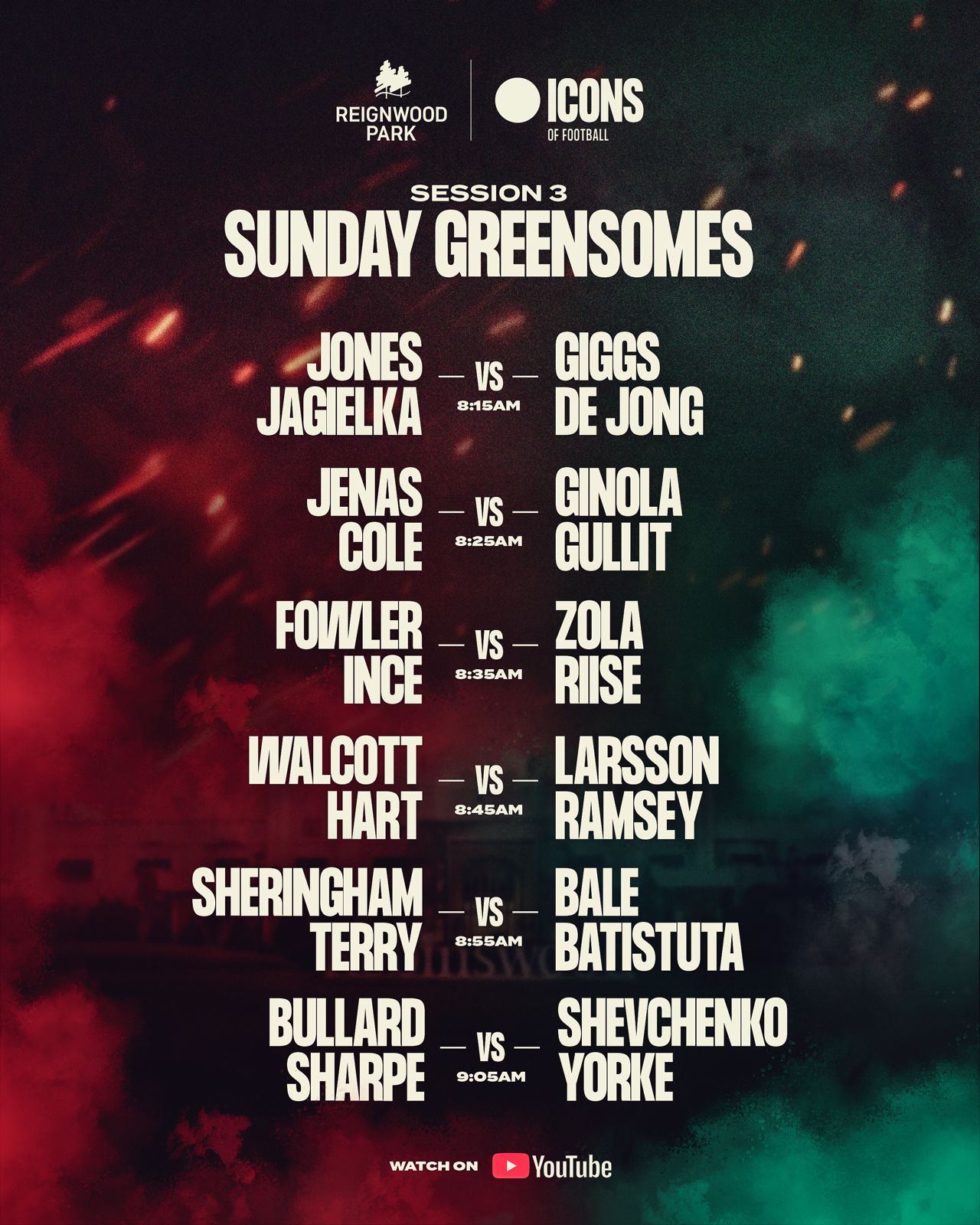 With just one point separating the sides, the alternate shot format will again test the chemistry of football’s biggest names. High-profile matchups include Paul Ince and Robbie Fowler looking to repeat their Saturday morning success against the legendary Team World duo of Gianfranco Zola and John Arne Riise.
